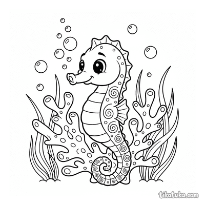 A secção reúne 160 desenhos dedicados a animais que habitam debaixo de água. Os personagens cobrem uma ampla variedade de espécies — de pequenos axolotes e cavalos-marinhos a imponentes tubarões-baleia — inseridos em cenas com corais, algas e outros elementos do fundo do mar. As composições apresentam graus de detalhe variados, tornando-as adequadas tanto para crianças pequenas como para as mais velhas.