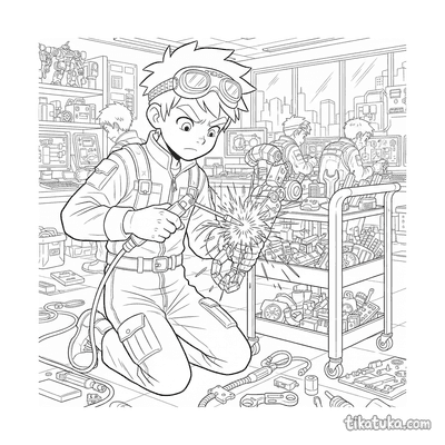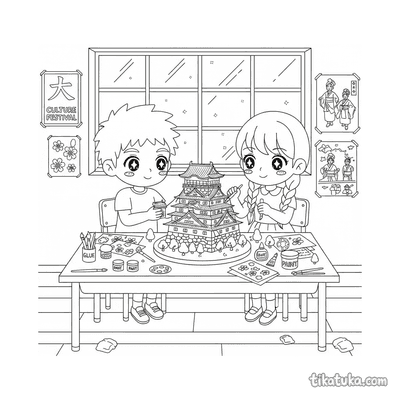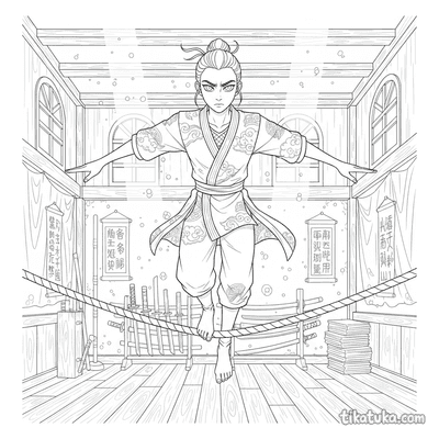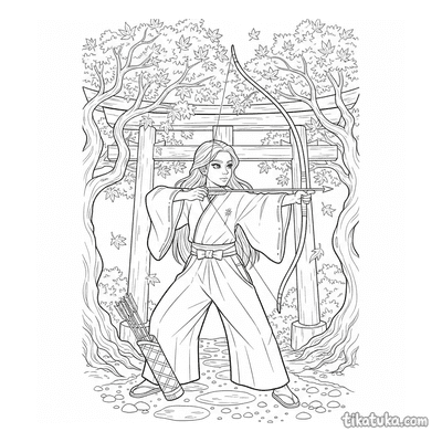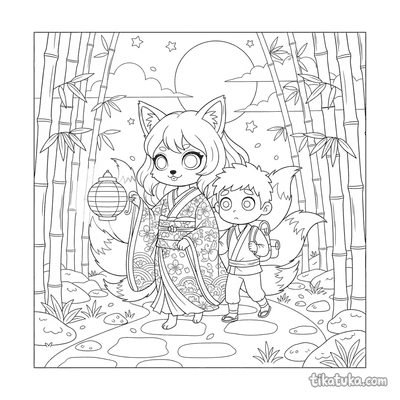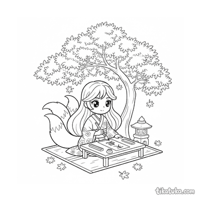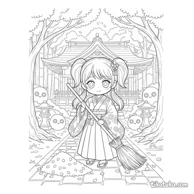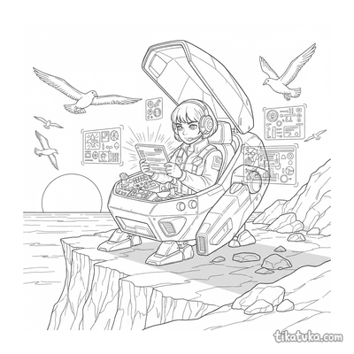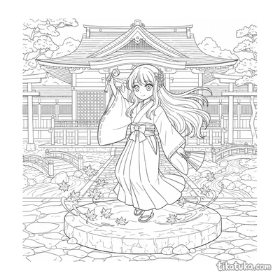 A coleção reúne cenas do universo do anime japonês: sacerdotisas dançando kagura com sinos, aprendizes de ninja em treino nos telhados, espíritos kitsune guiando viajantes por florestas de bambu e pilotos executando diagnósticos na cabine de mechas gigantes. Cada página retrata um momento específico — do dojo tradicional à cidade de néon iluminada à noite — com contornos bem definidos que funcionam para crianças e para fãs mais velhos do gênero. Os temas percorrem o Japão feudal, o folclore, o cotidiano escolar e os cenários futuristas que caracterizam o anime.