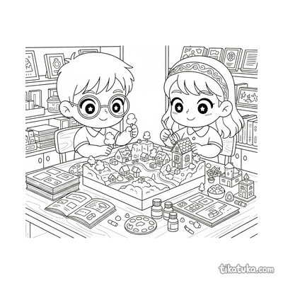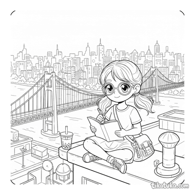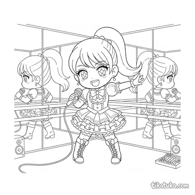 A seção conta com 122 páginas de anime japonês organizadas em torno de personagens e situações reconhecíveis do gênero. Há duplas desenhando em penhascos à beira-mar, clubes de arco e flecha praticando em dojos tradicionais, entregadores cortando cidades de néon em scooters flutuantes e cantoras idol ensaiando no estúdio. Cada composição é construída com traços limpos e áreas bem delimitadas, o que facilita o trabalho dentro das linhas tanto para crianças pequenas quanto para quem já tem mais prática.