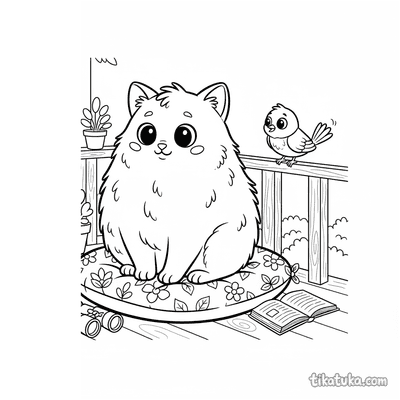 Esta coleção reúne 134 desenhos para colorir com cenas de interior e momentos domésticos: animais lendo em cantinhos aconchegantes junto à janela, personagens cozinhando tortas e cupcakes, gatinhos dormindo em cestas de lã, huskies padeiros numa cozinha animada. Os personagens variam entre gatinhos, guaxinins, raposas, huskies e pequenos dinossauros exploradores — todos em situações simples e cheias de expressividade que prendem a atenção das crianças.