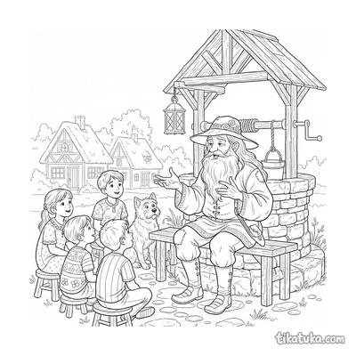 Todas as imagens estão disponíveis em contorno a preto e branco, prontas para imprimir em casa ou explorar diretamente no ecrã com a ferramenta de colorir online. É possível baixar gratuitamente qualquer desenho da coleção, imprimir várias folhas de uma vez para uma sessão em grupo ou deixar as crianças descobrirem os personagens folclóricos no modo digital — sem necessidade de registo.