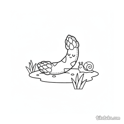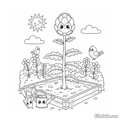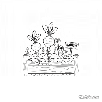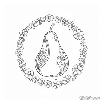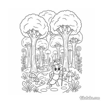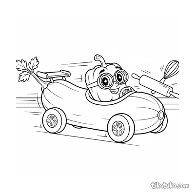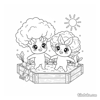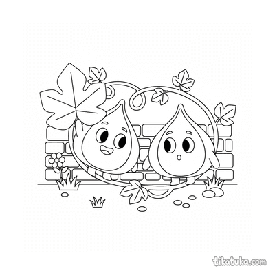 A seção de frutas e legumes reúne 152 ilustrações em preto e branco com uma variedade considerável de assuntos e estilos: personagens kawaii com expressões animadas, representações botânicas precisas, cenas de horta e mercado, molduras no estilo art nouveau e situações de aventura como a abobrinha com jardineiro minúsculo ou a vagem de ervilha gigante. Essa diversidade garante que crianças com gostos bem diferentes consigam encontrar algo que chame a atenção.