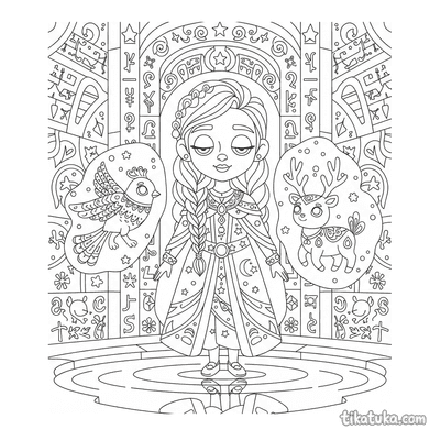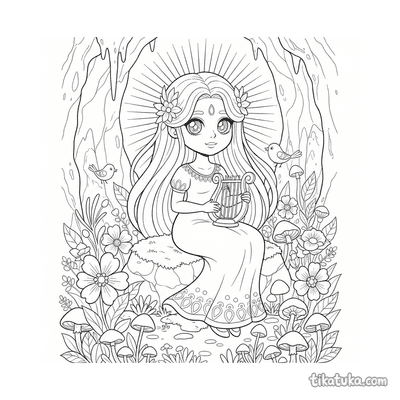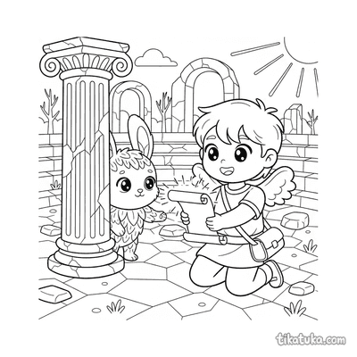 A secção de mitos reúne 153 desenhos inspirados em criaturas, heróis e divindades de diferentes tradições míticas. Do Minotauro preso no labirinto ao Condutor da Carruagem Solar, passando por Escribas que encontram deuses em bibliotecas de palácios e Ninfas que celebram em florestas antigas, cada cena foi pensada para crianças, com linhas bem definidas e composições que equilibram personagens e cenários sem sobrecarregar a página.