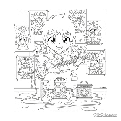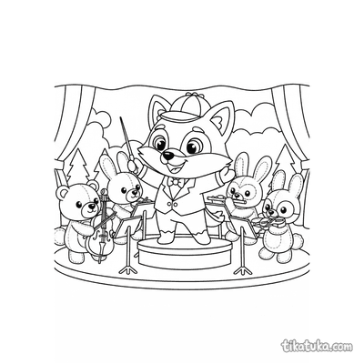 Nesta coleção você encontra personagens apaixonados por música — do coala maestro ao ouriço guitarrista, passando por bandas marciais infantis, trios de violino e piano, e crianças dançando em coretos ao ar livre. As cenas se passam em festivais, garagens, parques e palcos, com instrumentos que vão do acordeão à bateria e do piano clássico ao toca-discos de vinil. Uma seleção pensada para crianças que curtem música e adoram criar com lápis e canetas.
