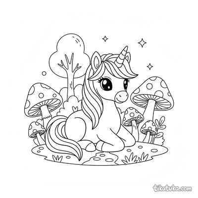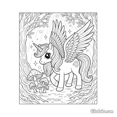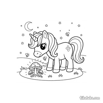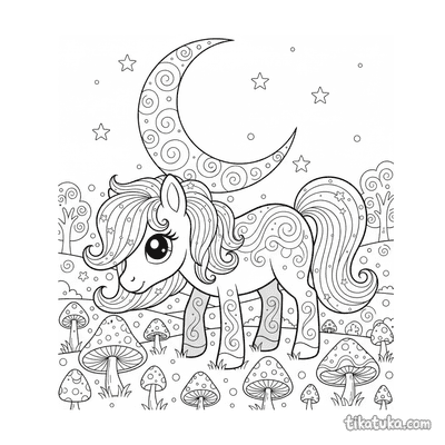 A coleção de pôneis reúne personagens dos mais variados universos: unicórnios com crinas mágicas, pegasus cruzando nuvens de tempestade, potrinhos adormecidos no feno e cavaleiros em armadura diante de castelos. Cada desenho traz uma cena própria — um pônei artista diante do cavalete, um pegasus carteiro com bolsa postal, um unicórnio numa caverna de cristal ou um potrinho num piquenique no campo. É uma categoria ideal para crianças que adoram histórias com esses personagens fantásticos.