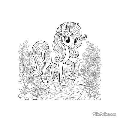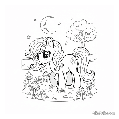 Com 287 desenhos disponíveis, esta categoria de pôneis cobre um universo amplo de aventuras e cenários: cenas de magia na floresta encantada, viagens até o topo de montanhas, visitas à padaria com carrinho de maçãs e momentos de carnaval num carrossel. As composições variam entre páginas mais simples, ideais para as crianças menores, e ilustrações com mais detalhes para quem já aprecia um desafio maior.
