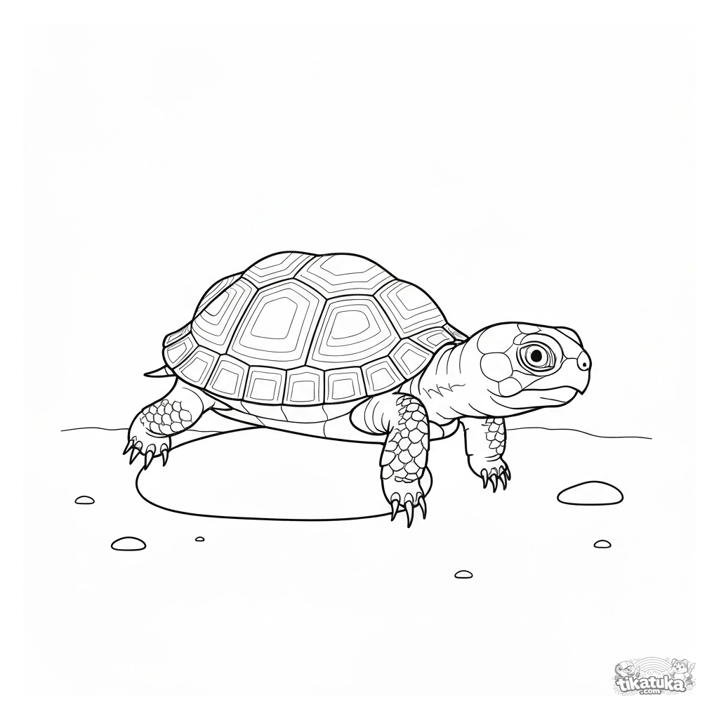 Página para colorir infantil: uma tartaruguinha sobe em um seixo. Linhas claras e poucos detalhes para crianças de 3-5 anos começando a colorir.