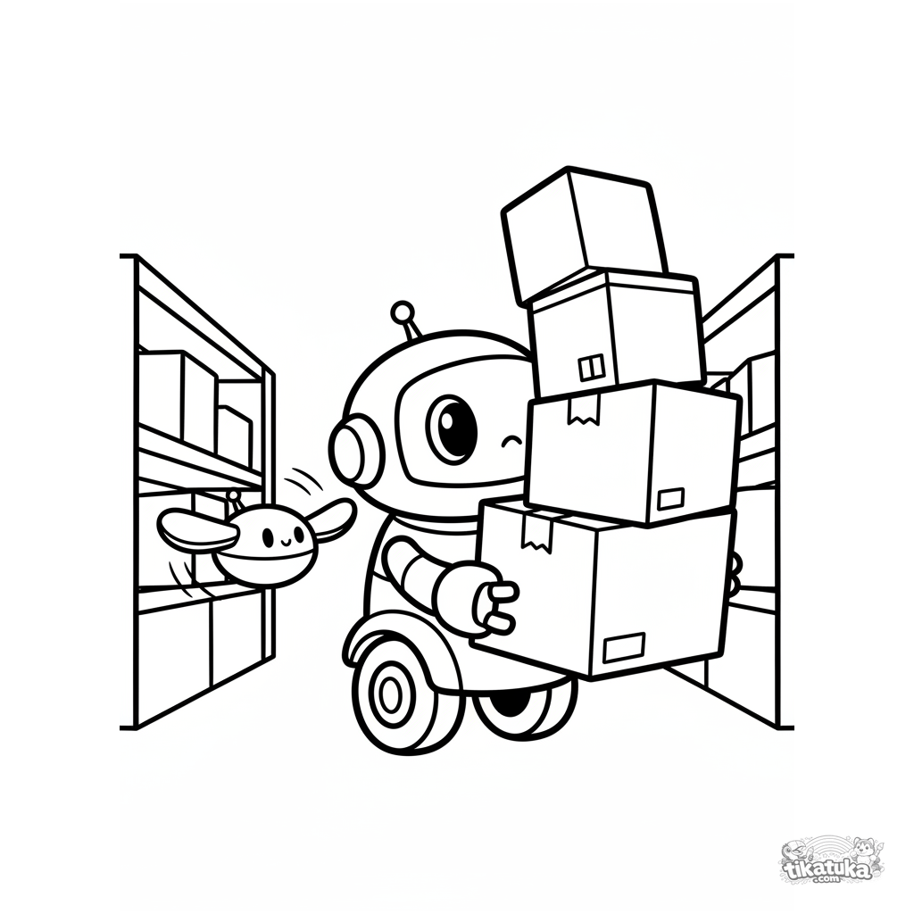 Uma página para colorir de Robôs com nível Fácil. Ela combina com a idade 2-3 anos, imprime bem em casa e abre imediatamente no modo online.