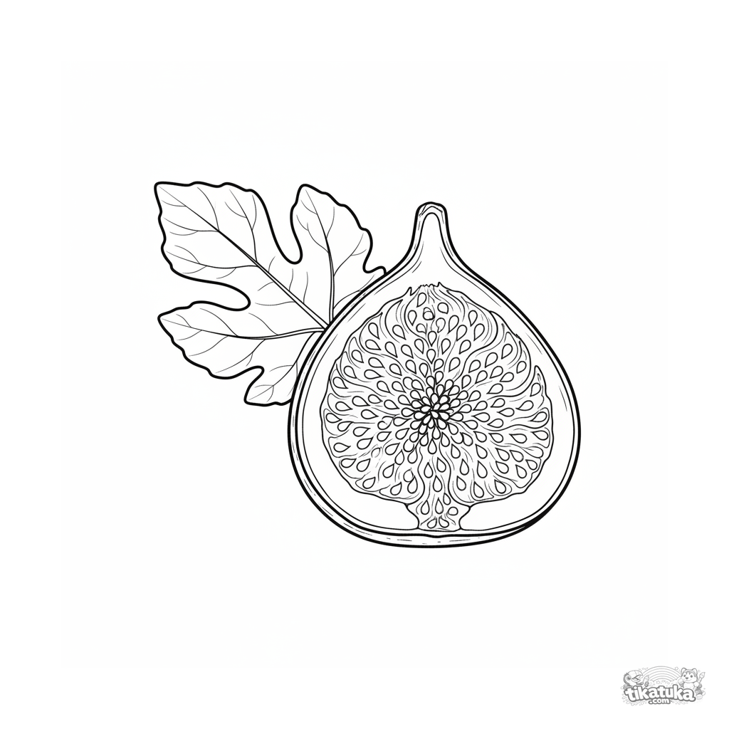 Página botânica detalhada para colorir do corte de um figo. Para crianças de 10-12 anos. Estilo realista de guia de campo, educativo.