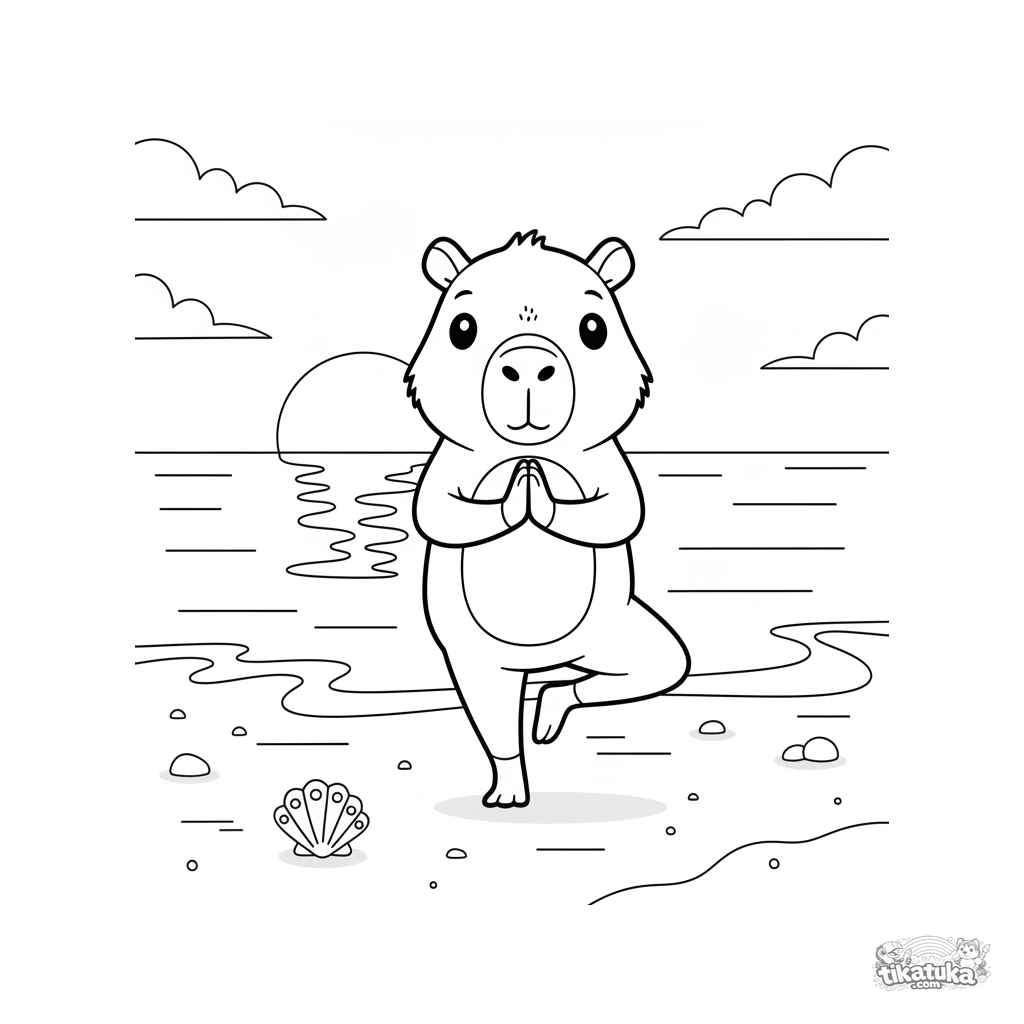 Uma página para colorir de Capivaras e relax com nível Médio. Ela combina com a idade 4-6 anos, imprime bem em casa e abre imediatamente no modo online.