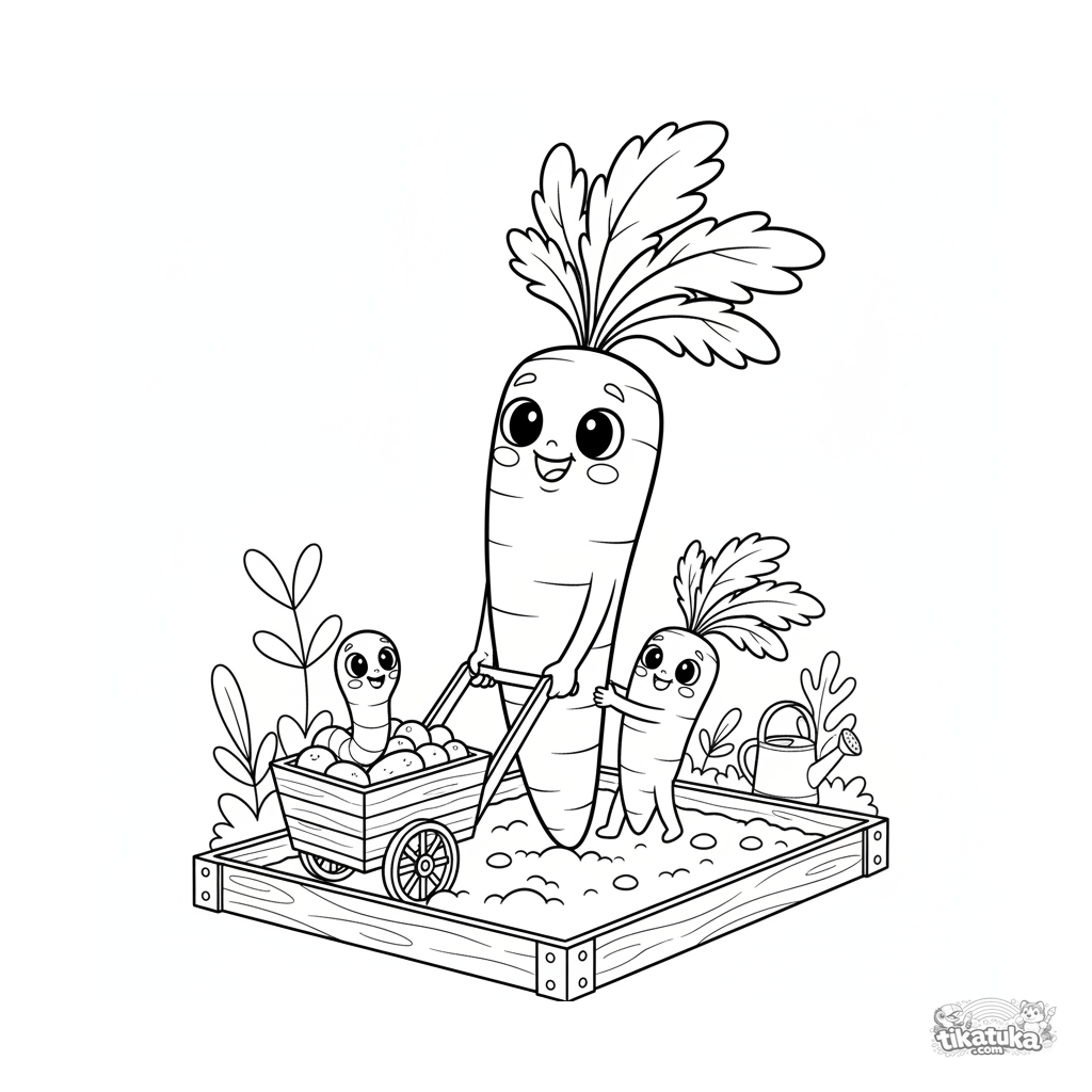 Uma página para colorir de Frutas e legumes com nível Médio. Ela combina com a idade 4-6 anos, imprime bem em casa e abre imediatamente no modo online.