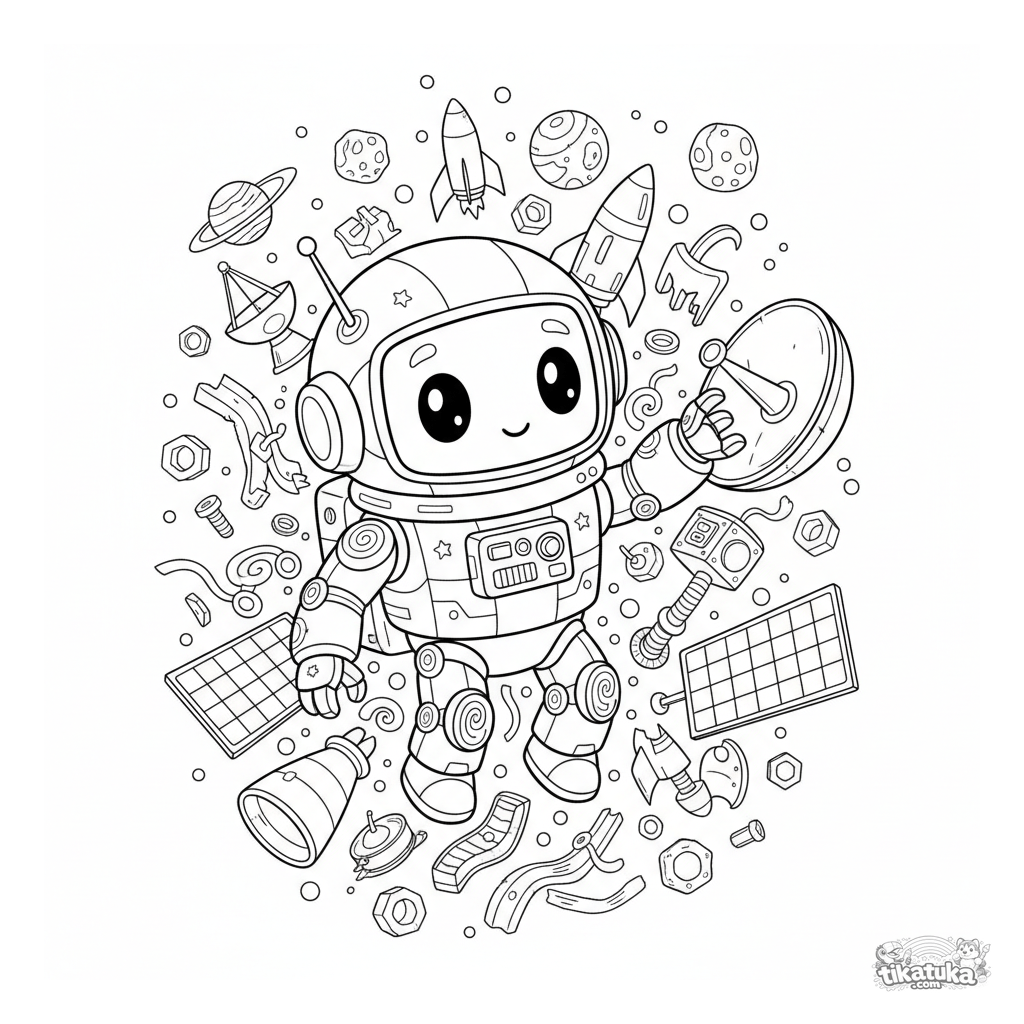 Uma página para colorir de Espaço com nível Difícil. Ela combina com a idade 8+ anos, imprime bem em casa e abre imediatamente no modo online.
