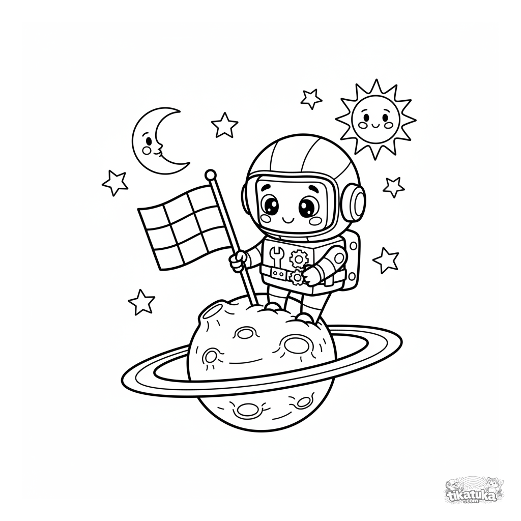 Uma página para colorir de Espaço com nível Fácil. Ela combina com a idade 3-6 anos, imprime bem em casa e abre imediatamente no modo online.