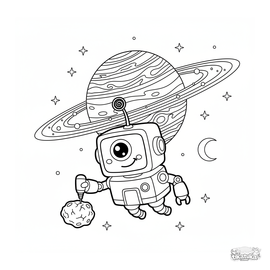 Uma página para colorir de Espaço com nível Difícil. Ela combina com a idade 8+ anos, imprime bem em casa e abre imediatamente no modo online.