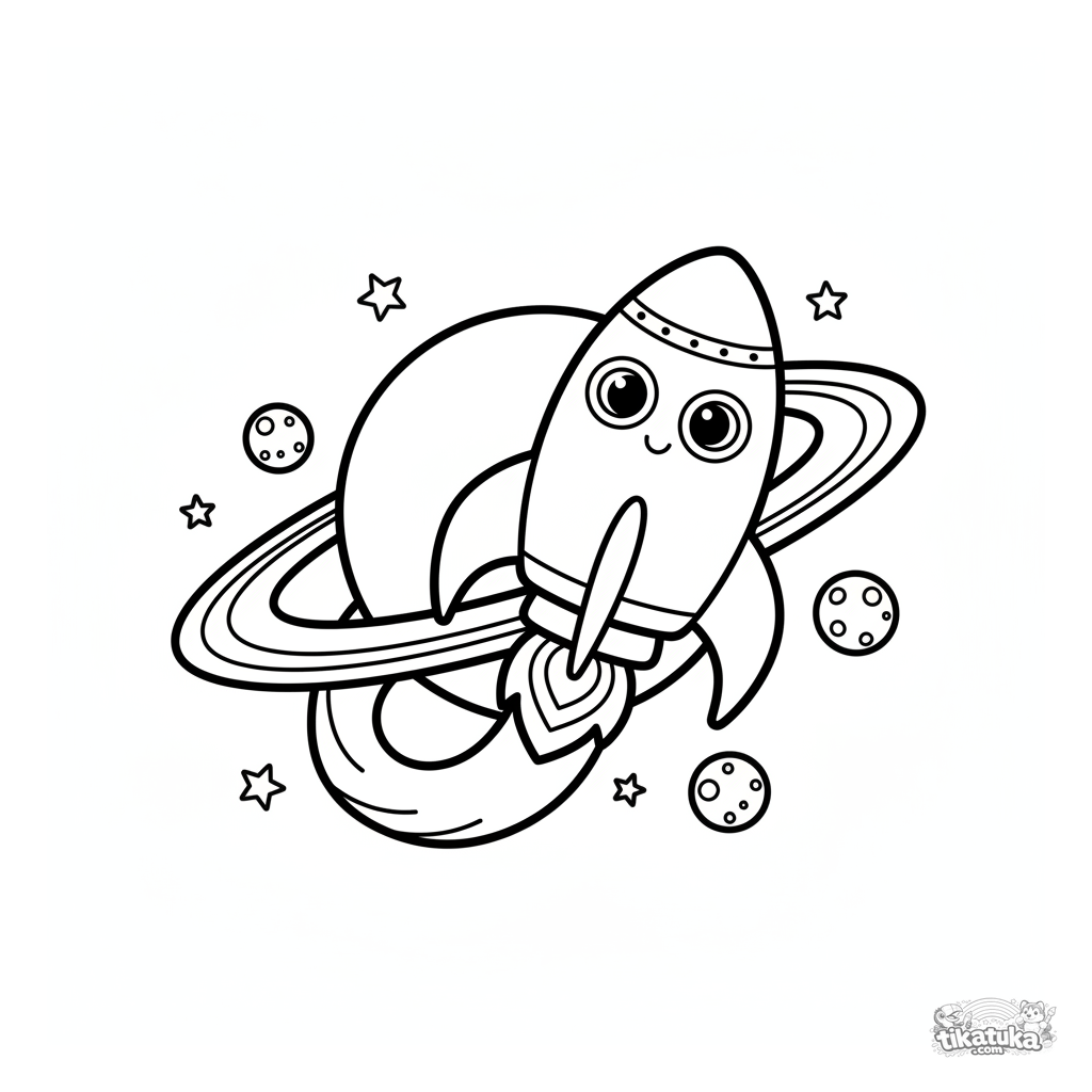 Uma página para colorir de Espaço com nível Fácil. Ela combina com a idade 2-3 anos, imprime bem em casa e abre imediatamente no modo online.