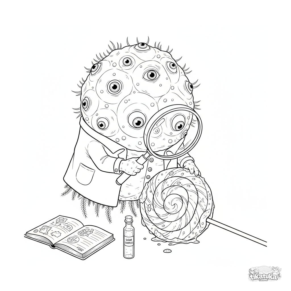 Uma página para colorir de Micróbios com nível Difícil. Ela combina com a idade 10+ anos, imprime bem em casa e abre imediatamente no modo online.