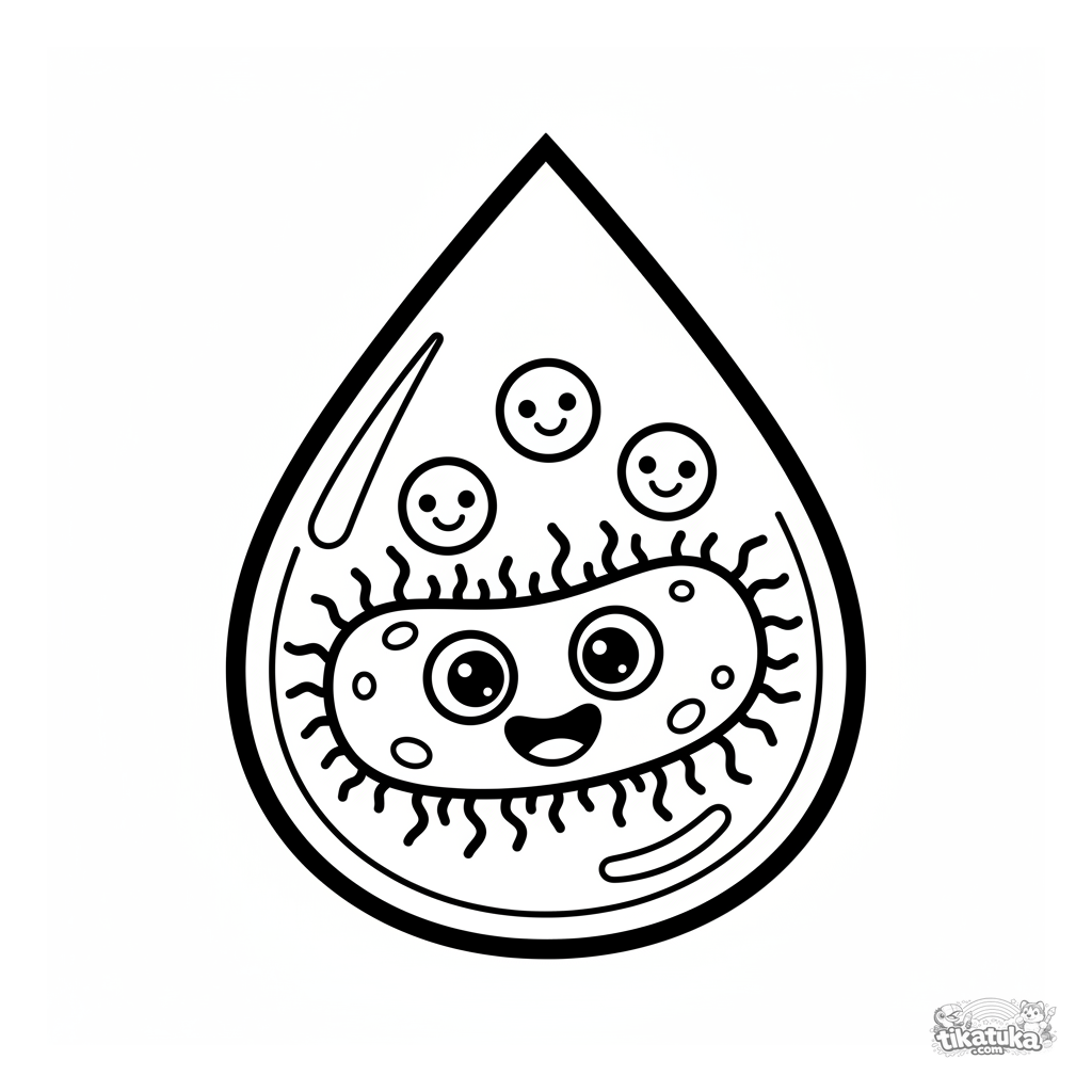Uma página para colorir de Micróbios com nível Fácil. Ela combina com a idade 2-5 anos, imprime bem em casa e abre imediatamente no modo online.