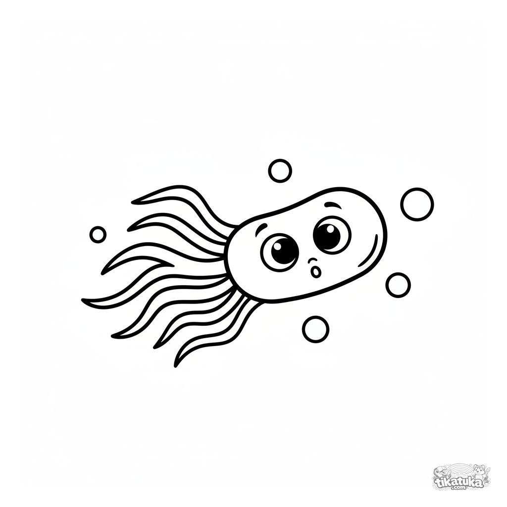 Uma página para colorir de Micróbios com nível Fácil. Ela combina com a idade 4-6 anos, imprime bem em casa e abre imediatamente no modo online.