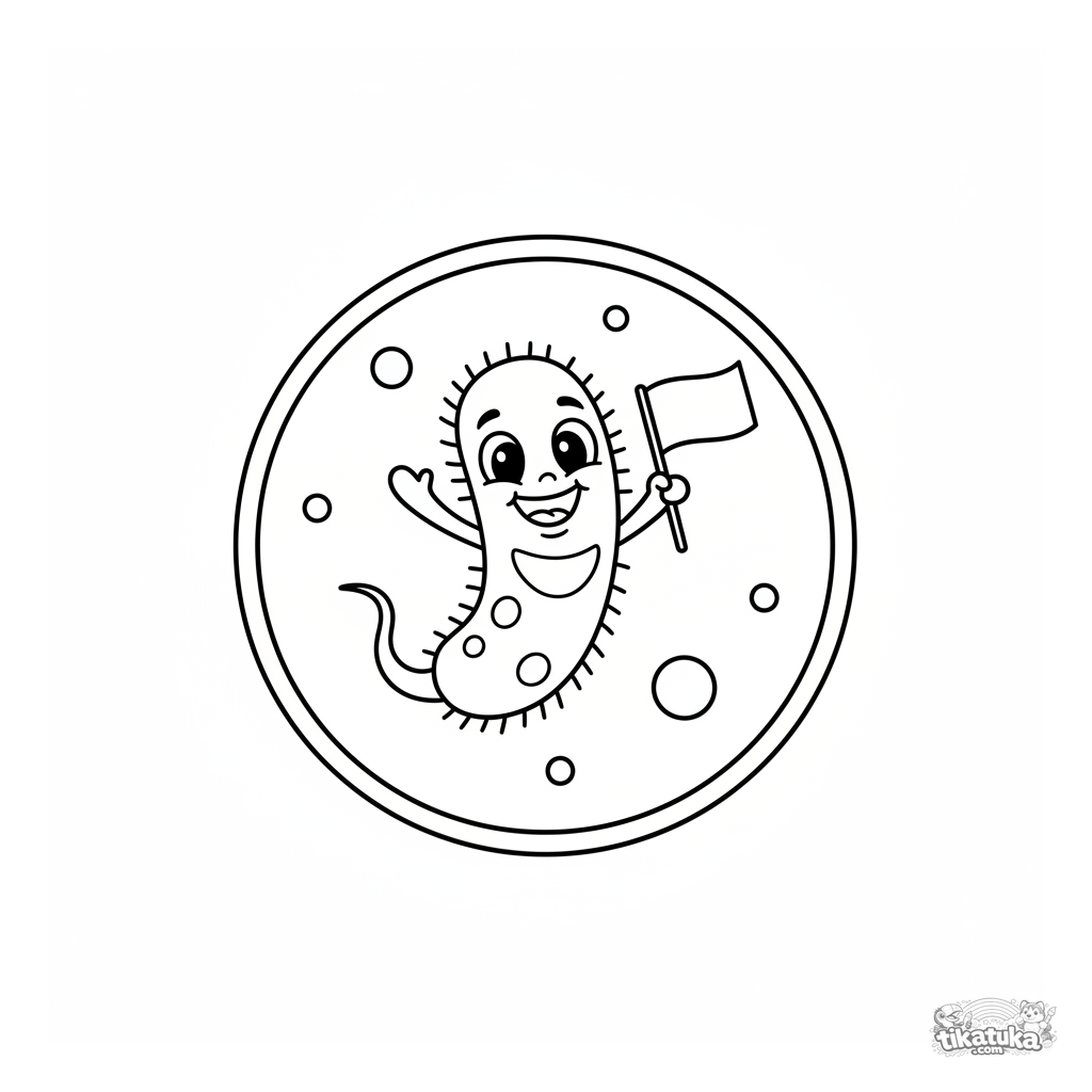 Uma página para colorir de Micróbios com nível Fácil. Ela combina com a idade 2-3 anos, imprime bem em casa e abre imediatamente no modo online.