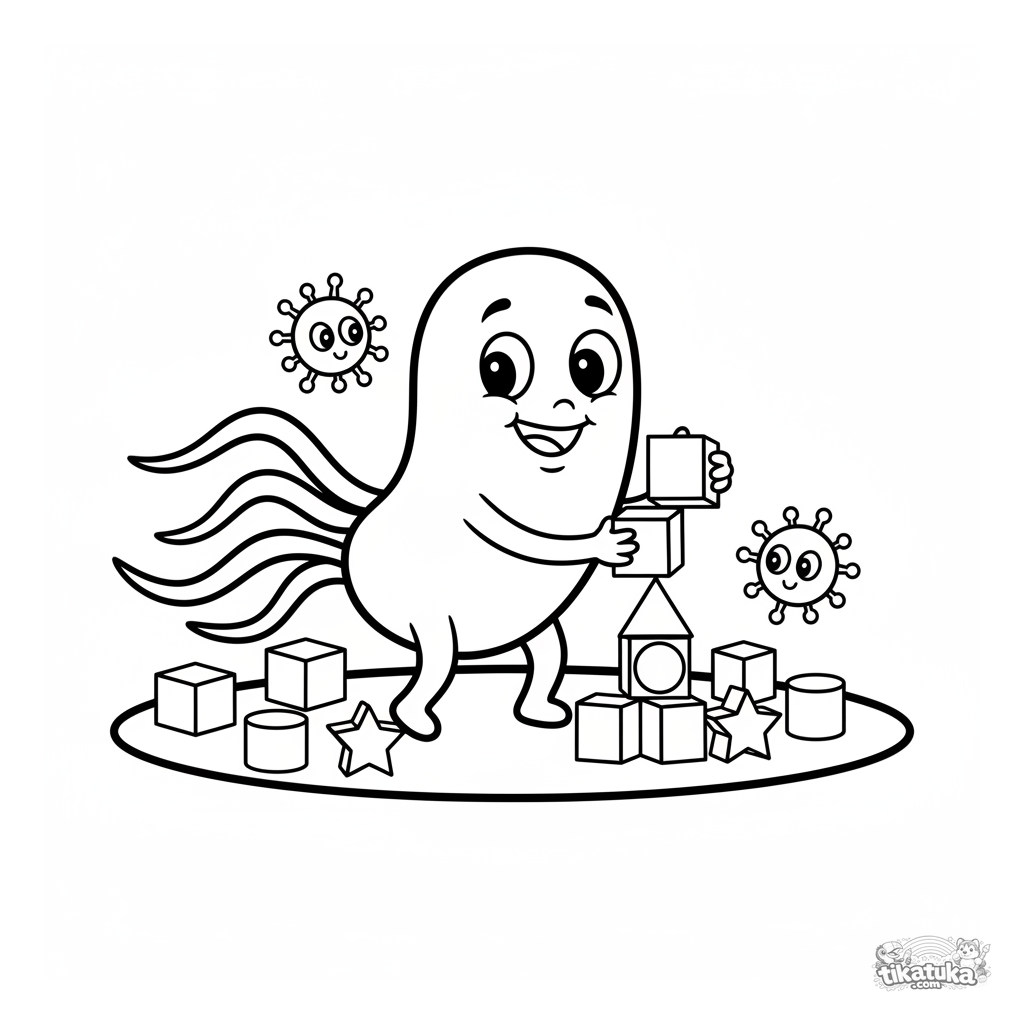 Uma página para colorir de Micróbios com nível Fácil. Ela combina com a idade 2-5 anos, imprime bem em casa e abre imediatamente no modo online.