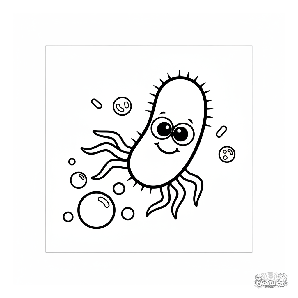 Uma página para colorir de Micróbios com nível Fácil. Ela combina com a idade 2-3 anos, imprime bem em casa e abre imediatamente no modo online.
