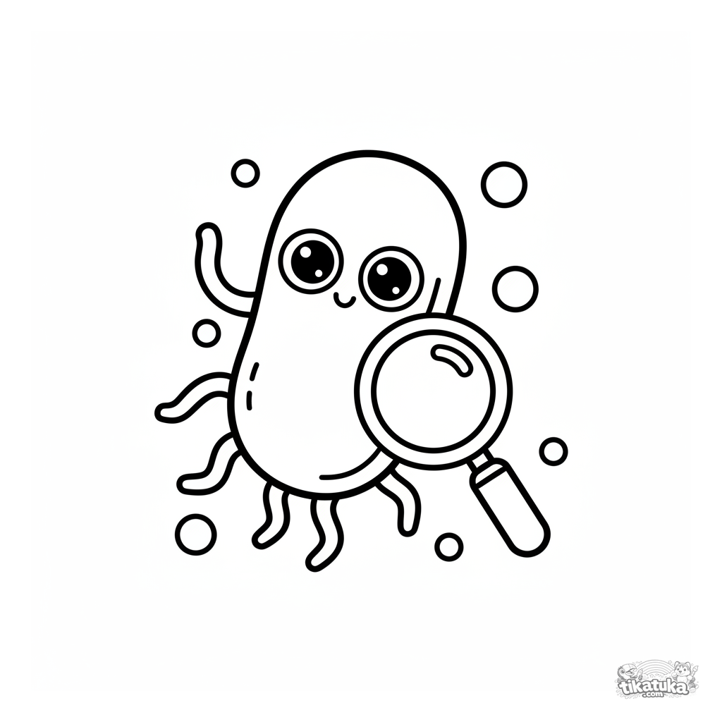 Uma página para colorir de Micróbios com nível Fácil. Ela combina com a idade 2-3 anos, imprime bem em casa e abre imediatamente no modo online.