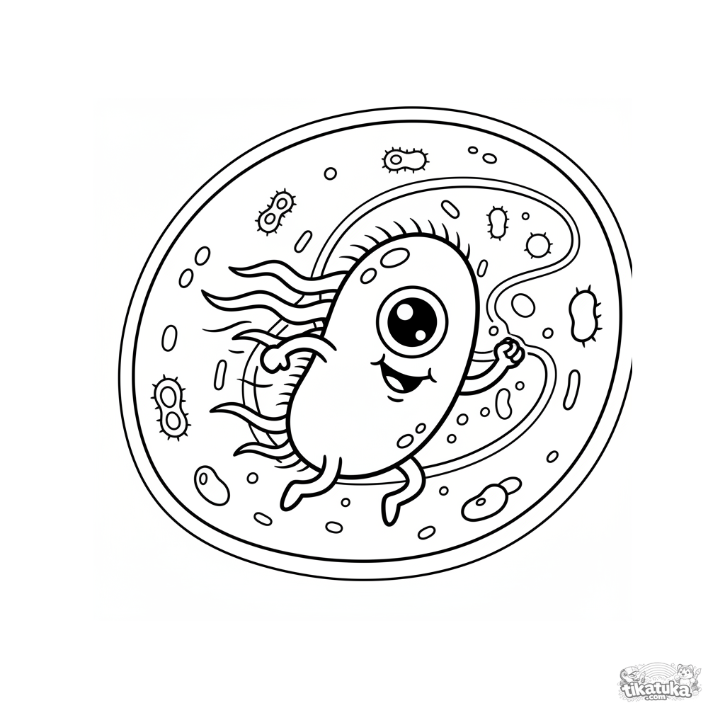 Uma página para colorir de Micróbios com nível Médio. Ela combina com a idade 5-8 anos, imprime bem em casa e abre imediatamente no modo online.
