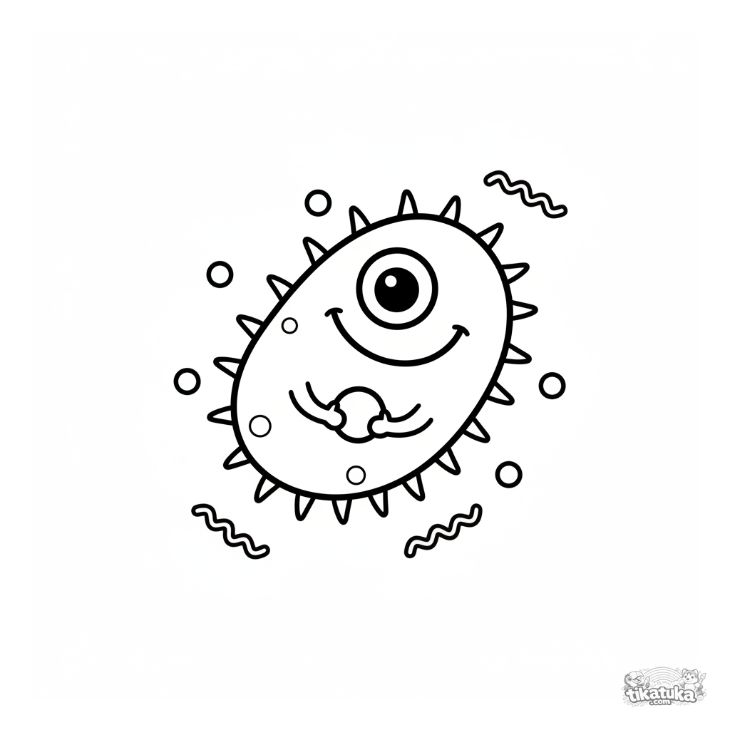 Uma página para colorir de Micróbios com nível Fácil. Ela combina com a idade 2-3 anos, imprime bem em casa e abre imediatamente no modo online.