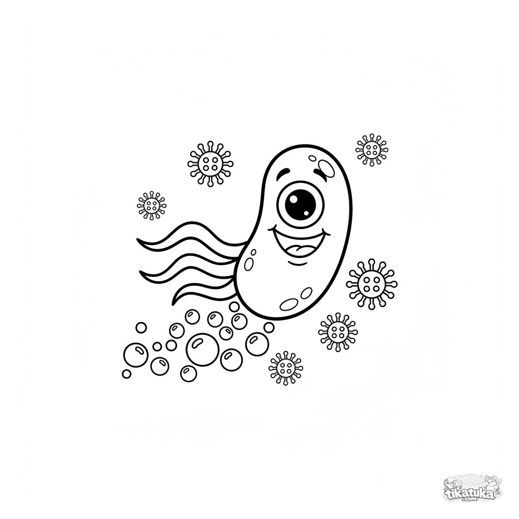 Uma página para colorir de Micróbios com nível Fácil. Ela combina com a idade 2-3 anos, imprime bem em casa e abre imediatamente no modo online.