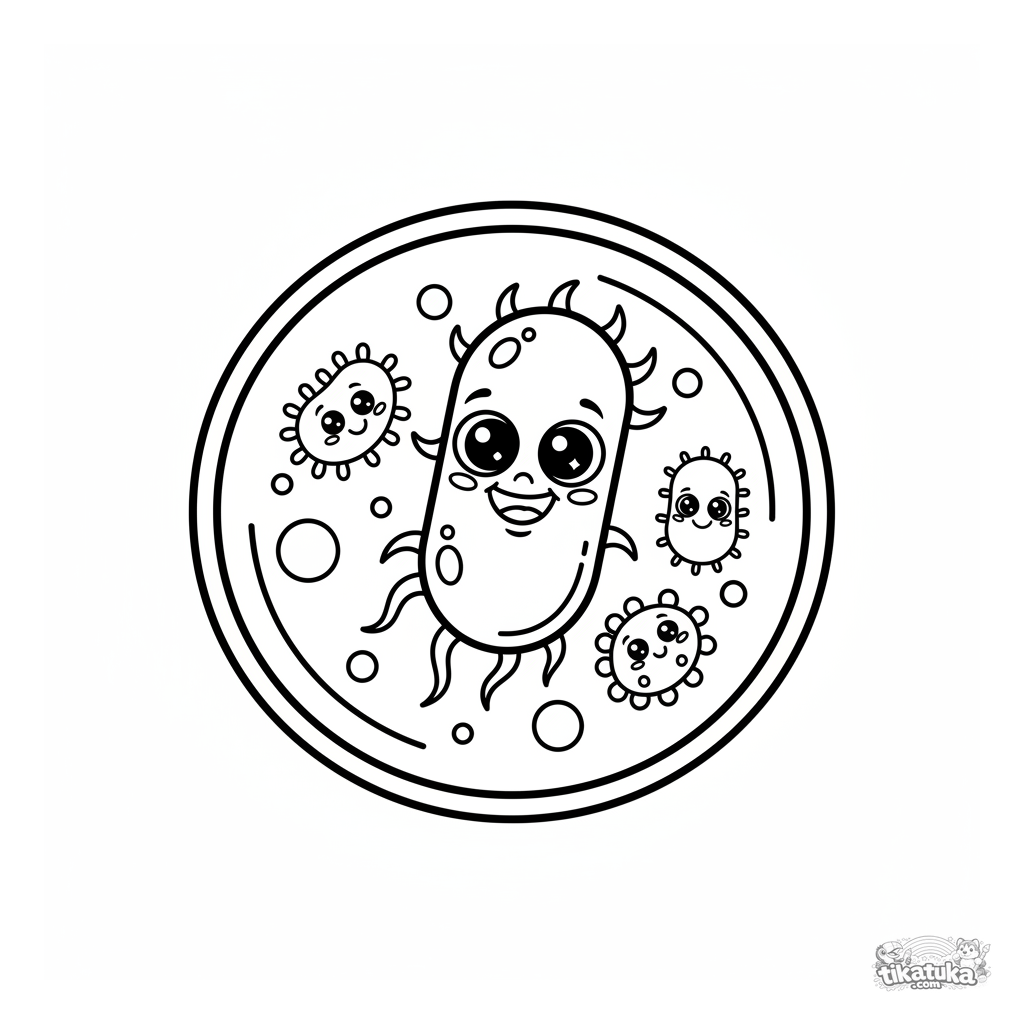 Uma página para colorir de Micróbios com nível Fácil. Ela combina com a idade 2-3 anos, imprime bem em casa e abre imediatamente no modo online.