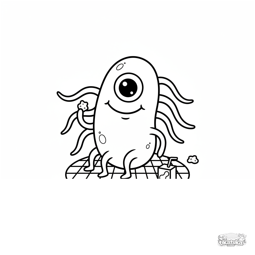 Uma página para colorir de Micróbios com nível Fácil. Ela combina com a idade 2-5 anos, imprime bem em casa e abre imediatamente no modo online.