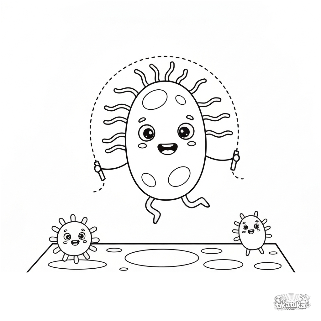 Uma página para colorir de Micróbios com nível Fácil. Ela combina com a idade 2-5 anos, imprime bem em casa e abre imediatamente no modo online.