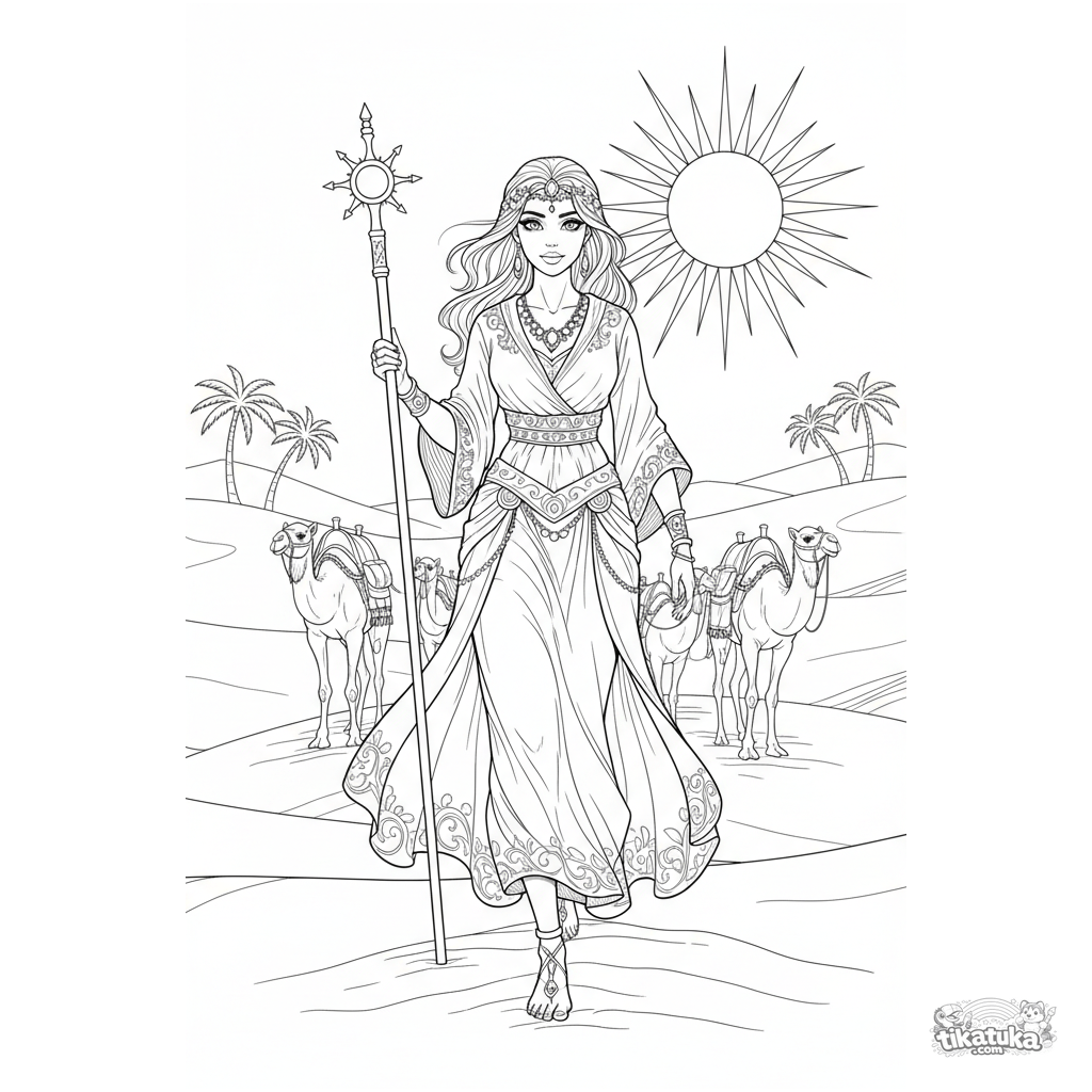 Uma página para colorir de Princesas com nível Difícil. Ela combina com a idade 10+ anos, imprime bem em casa e abre imediatamente no modo online.