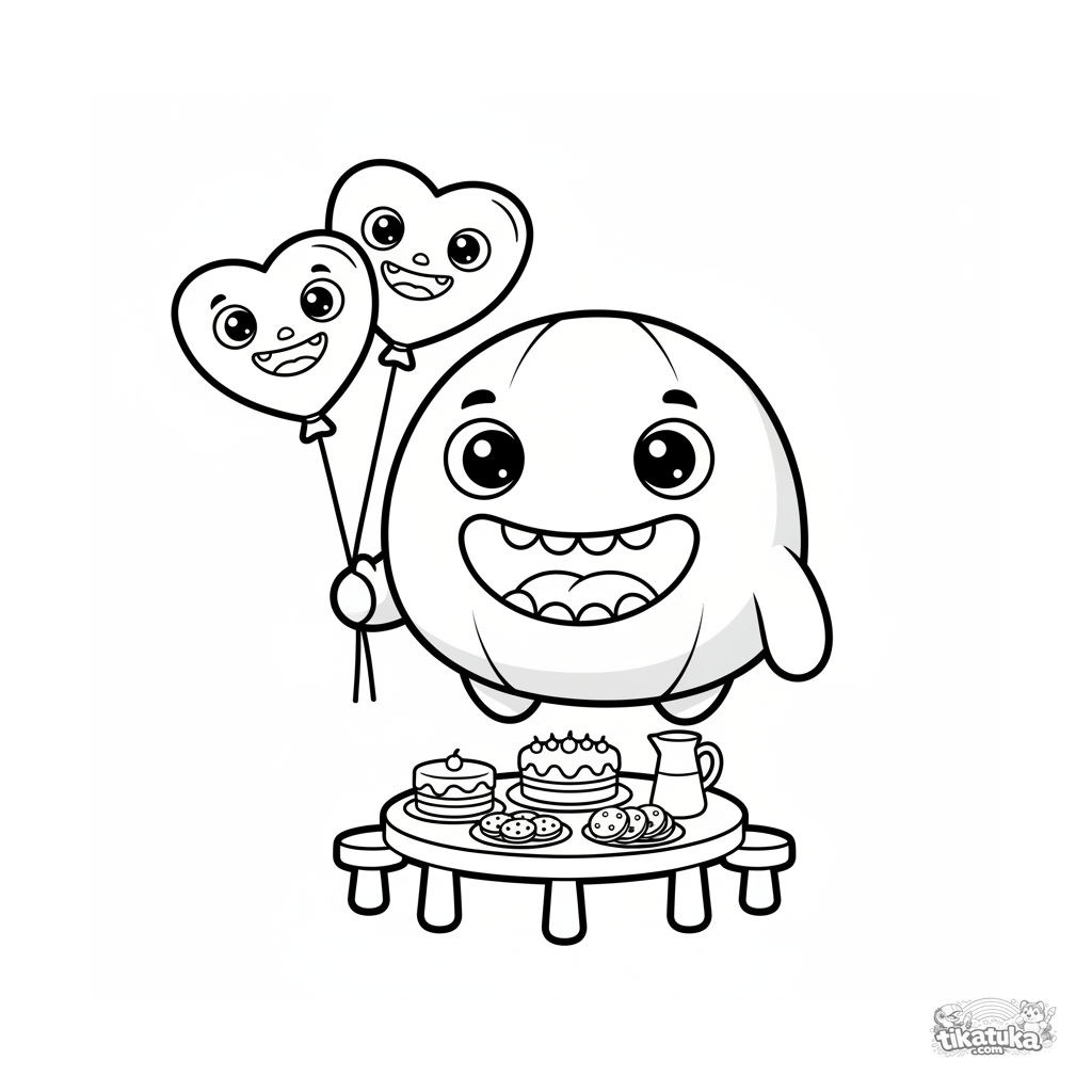 Uma página para colorir de Monstros com nível Fácil. Ela combina com a idade 2-3 anos, imprime bem em casa e abre imediatamente no modo online.