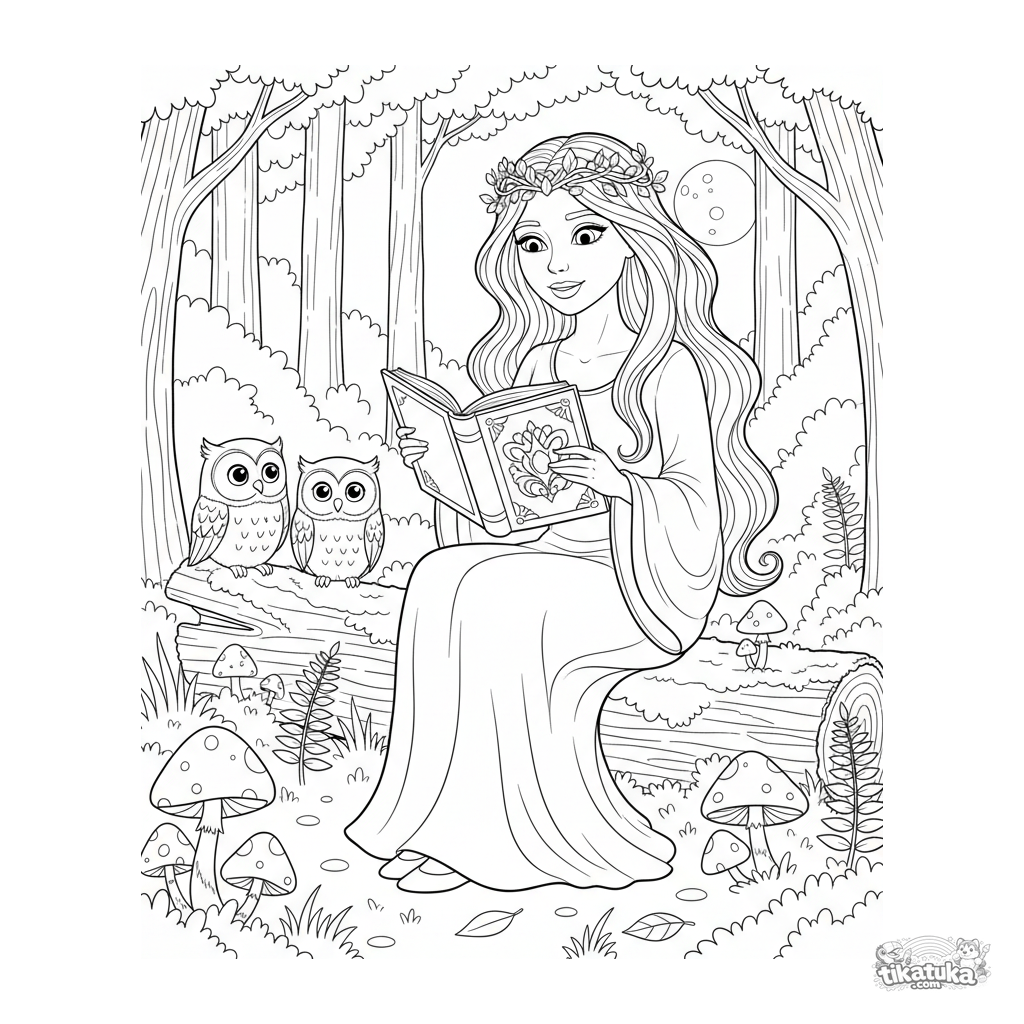 Uma página para colorir de Princesas com nível Médio. Ela combina com a idade 7-9 anos, imprime bem em casa e abre imediatamente no modo online.