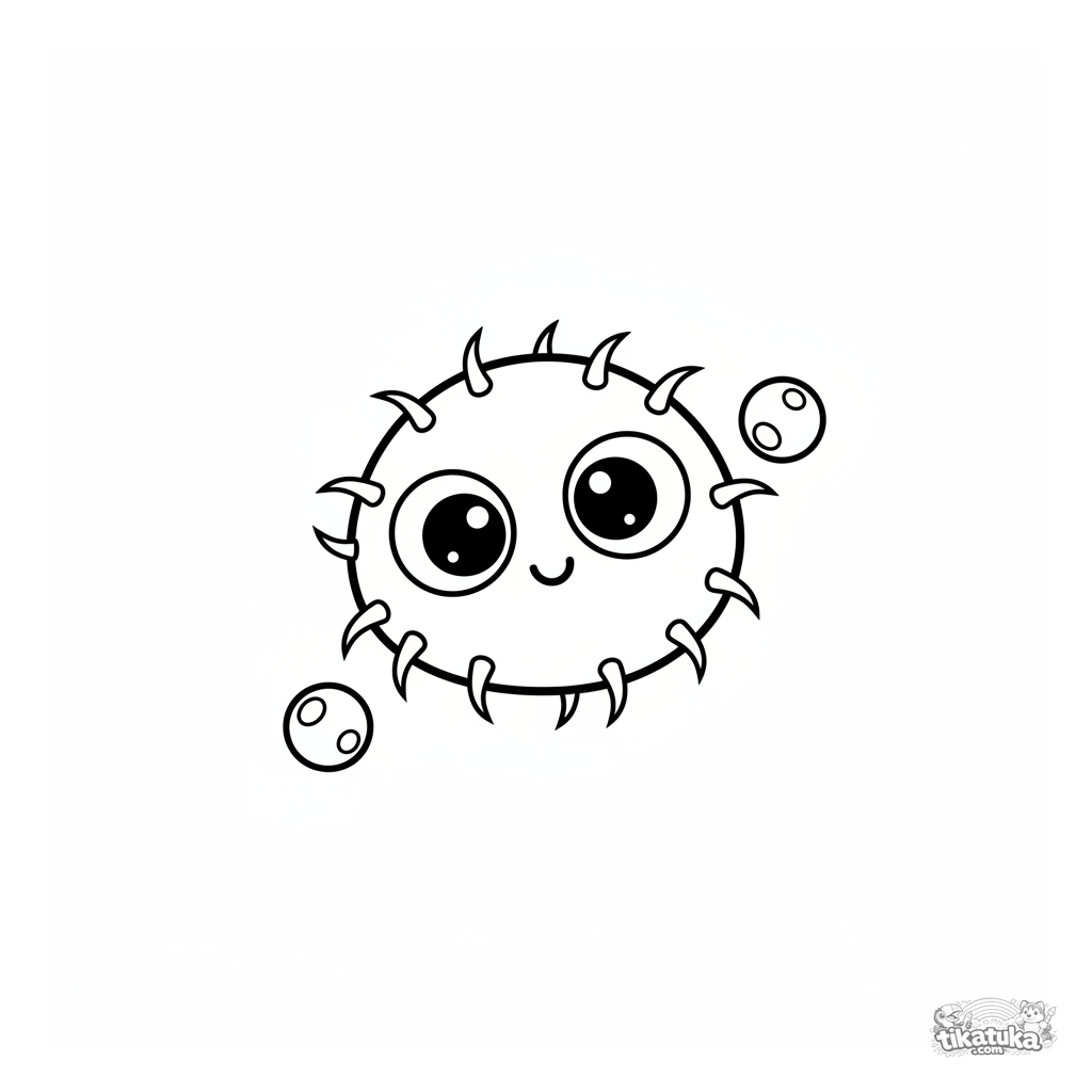Uma página para colorir de Micróbios com nível Fácil. Ela combina com a idade 2-3 anos, imprime bem em casa e abre imediatamente no modo online.
