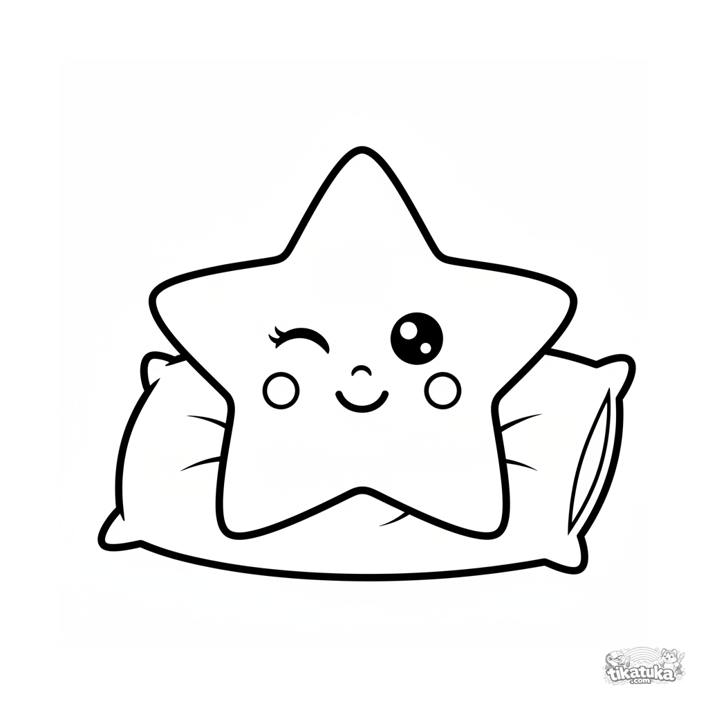 Página geométrica simples para colorir para crianças de 2-3 anos: uma almofada em forma de estrela com rosto feliz. Muito poucas linhas internas, áreas grandes.