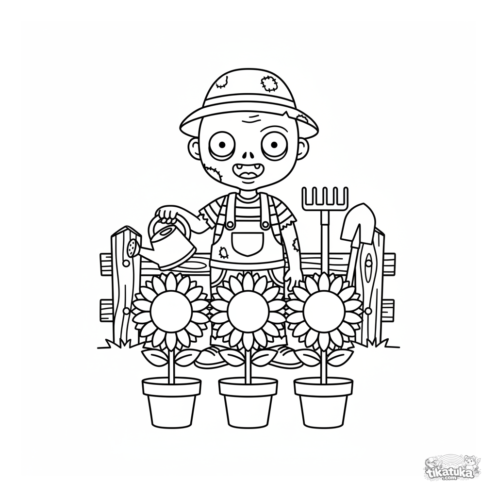 Uma página para colorir de Zumbis com nível Fácil. Ela combina com a idade 2-3 anos, imprime bem em casa e abre imediatamente no modo online.
