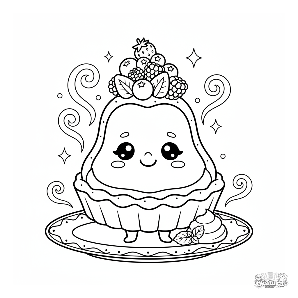 Uma página para colorir de Comida kawaii e boba com nível Médio. Ela combina com a idade 4-6 anos, imprime bem em casa e abre imediatamente no modo online.