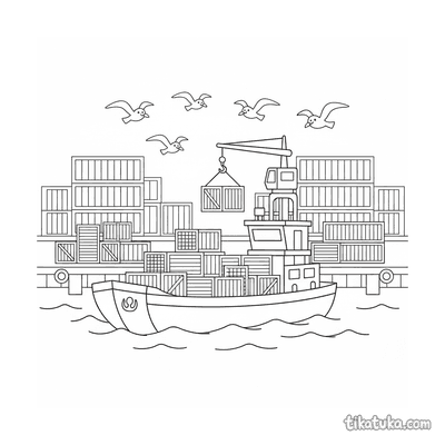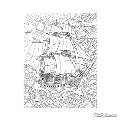 Uma página para colorir de Transporte aquático com nível Difícil. Ela combina com a idade 10+ anos, imprime bem em casa e abre imediatamente no modo online.