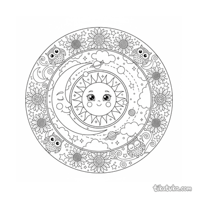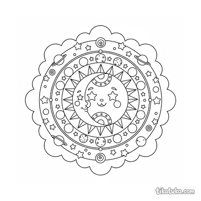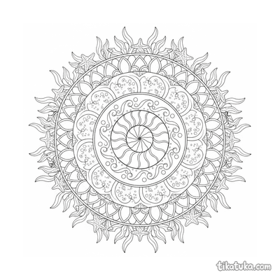 Uma página para colorir de Mandalas com nível Difícil. Ela combina com a idade 10+ anos, imprime bem em casa e abre imediatamente no modo online.