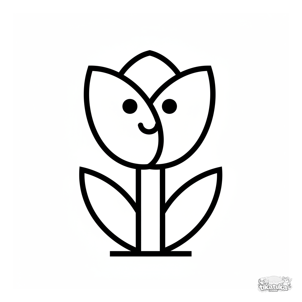 Página muito simples para colorir para bebês 2-3: uma tulipa feita de círculos e retângulos. Formas grandes fechadas.