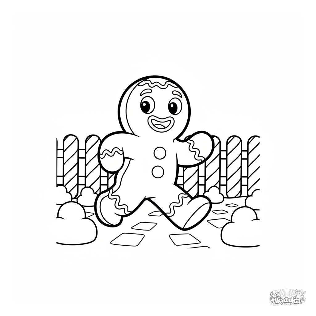 Página simples para colorir para crianças pequenas 2-4: o Biscoito de Gengibre fugindo. Grandes áreas para colorir, personagem de conto de fadas reconhecível.