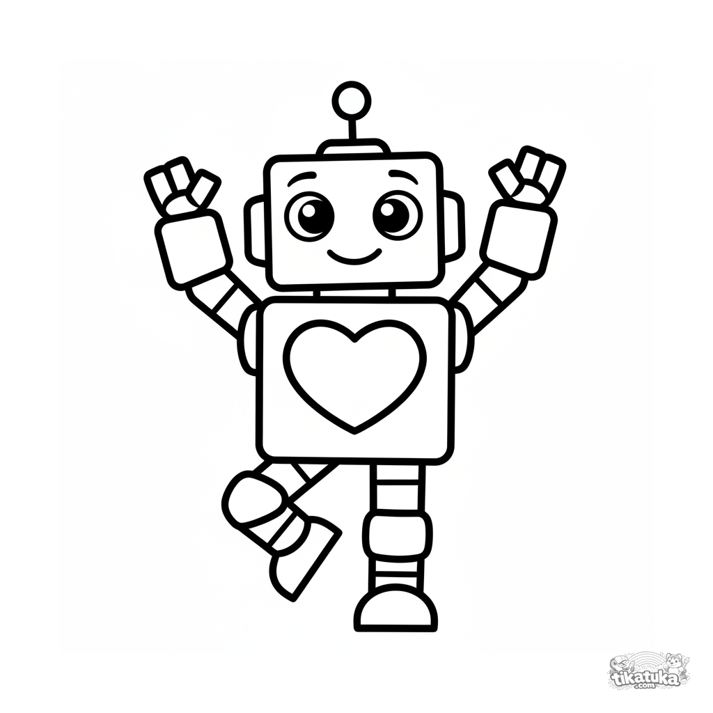 Página para colorir muito simples de um super-herói robô amigável acenando. Para crianças pequenas de 2-3 anos. Formas grandes, margens amplas, detalhes mínimos.