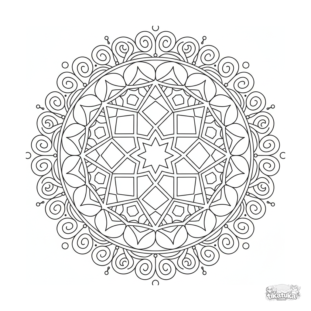 Uma página para colorir de Mandalas com nível Difícil. Ela combina com a idade 10+ anos, imprime bem em casa e abre imediatamente no modo online.