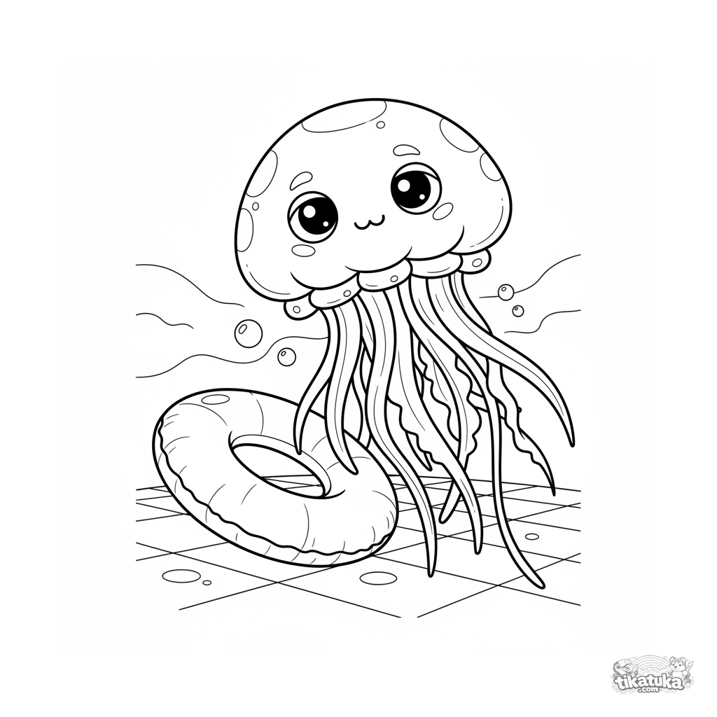 Uma página para colorir de Axolotes e água kawaii com nível Médio. Ela combina com a idade 7-9 anos, imprime bem em casa e abre imediatamente no modo online.