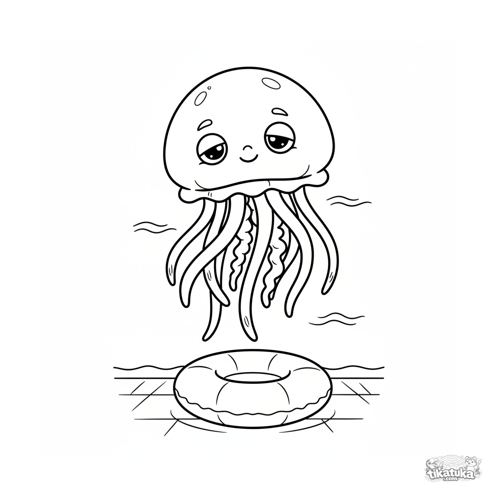 Uma página para colorir de Axolotes e água kawaii com nível Médio. Ela combina com a idade 4-6 anos, imprime bem em casa e abre imediatamente no modo online.