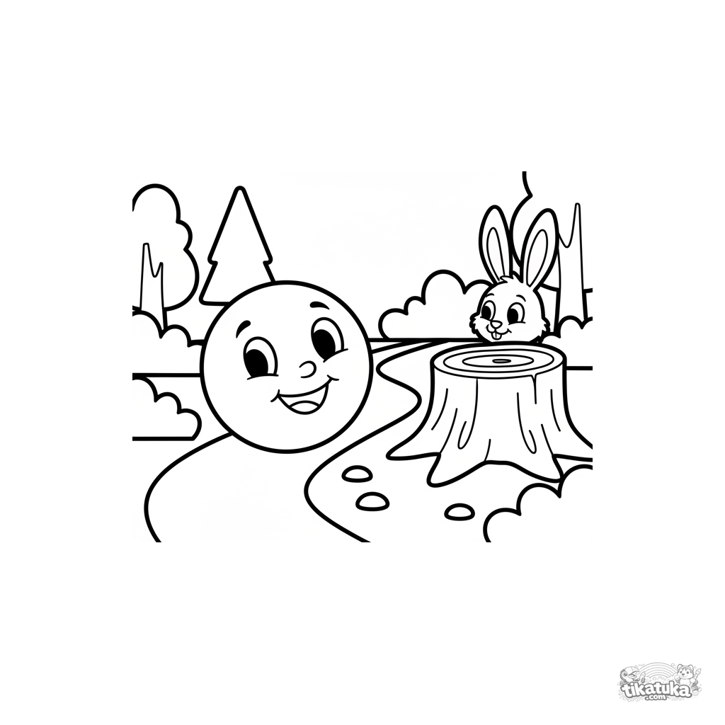 Página para colorir baseada no conto russo 'Kolobok' para os bem pequenos. Formas muito simples, personagem familiar.