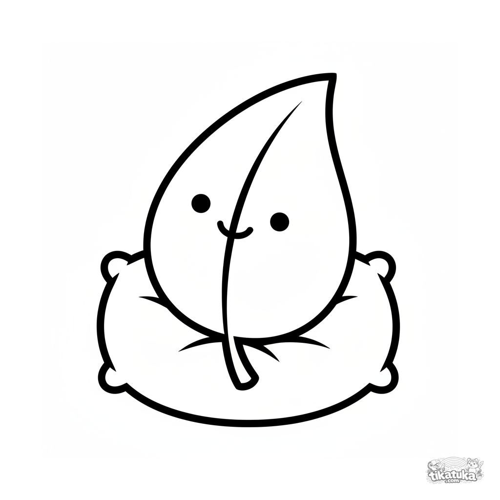 Página de folha para colorir para bebês de 2-3 anos: uma folha sorridente em um travesseiro macio. Linhas mínimas, forma grande, promove habilidades motoras.