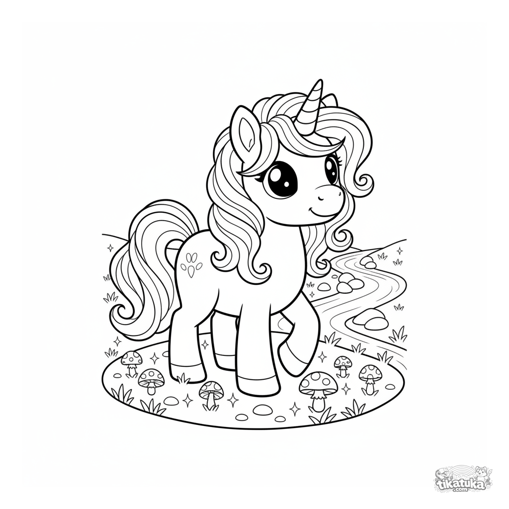 Uma página para colorir de Pôneis com nível Médio. Ela combina com a idade 3-6 anos, imprime bem em casa e abre imediatamente no modo online.